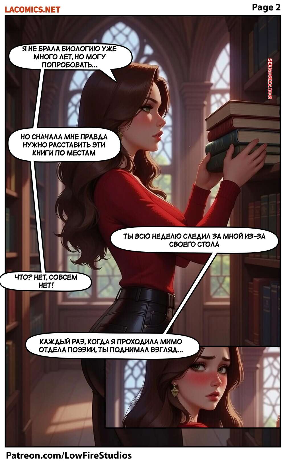 ΠΠΎΡΠ½ΠΎ ΠΊΠΎΠΌΠΈΠΊΡ ΠΠ΅ΠΆΠ΄Ρ ΠΏΠΎΠ»ΠΊΠ°ΠΌΠΈ. Between the Shelves. Lowfirestudios. ΠΠΎΡΡΡΠ°Ρ Π±ΡΡΠ½Π΅ΡΠΊΠ° Π·Π°Π½ΠΈΠΌΠ°Π»Π°ΡΡ Π΄Π΅Π»Π°ΠΌΠΈ Π² Π±ΠΈΠ±Π»ΠΈΠΎΡΠ΅ΠΊΠ΅ ΠΈ ΠΊΠΎΠΌΠΏΠ°Π½ΠΈΡ Π΅ΠΉ ΡΠΎΡΡΠ°Π²ΠΈΠ» ΠΏΠ°ΡΠ΅Π½Ρ. ΠΠ½ ΡΡΠ°Π» Π·Π°ΠΈΠ³ΡΡΠ²Π°ΡΡ Ρ Π΄Π΅Π²ΡΡΠΊΠΎΠΉ ΠΈ Π»Π°ΡΠΊΠ°ΡΡ Π΅Π΅, ΠΏΡΠ΅Π΄Π»Π°Π³Π°Ρ Π΅ΠΉ ΡΡΠ°Ρ Π½ΡΡΡΡΡ ΠΏΡΡΠΌΠΎ ΡΠ°ΠΌ.